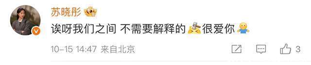 对此苏晓彤很快做出回应道:哎呦我们之间不需要解释,很爱你。这说明二人友谊并未受到风波影响。同为二人好友的周雨彤也第一时间点赞了该动态,以表明自己的态度。争议的源头是综艺节目《我家那闺女》10月12日更新的片段。根据节目显示出的内容来看,苏晓彤在临出门前因反复调整眉毛对称性而耗时一小时,面对好友的多次催促仍然不以为意,慢慢悠悠。